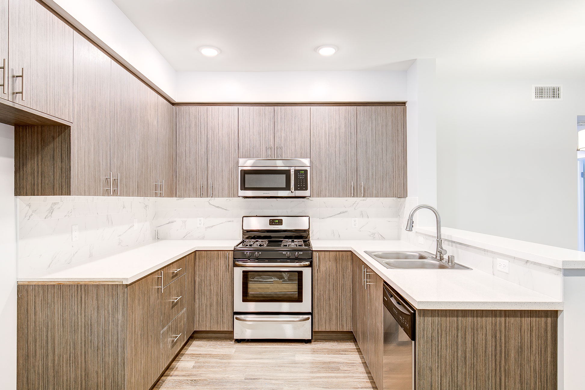 Welcome home to MODERNO North Hollywood Apartments, North Hollywood’s new modern apartment community ideally located by Lankershim Boulevard with easy access to the 170 and 5 Freeways. Setting the standard for excellence in residential living, each of the expansive one, two, and three bedroom apartment homes have been custom designed to provide both style and comfort. Enjoy in-home washers & dryers, fully equipped kitchens with stainless steel appliances, quartz stone countertops and Calcutta backsplash, wood style vinyl plank flooring, and many more distinctive designer touches throughout every room. As you explore this community you will discover a professionally equipped fitness center and recreation room, BBQ area, and tranquil courtyards and landscaping throughout.